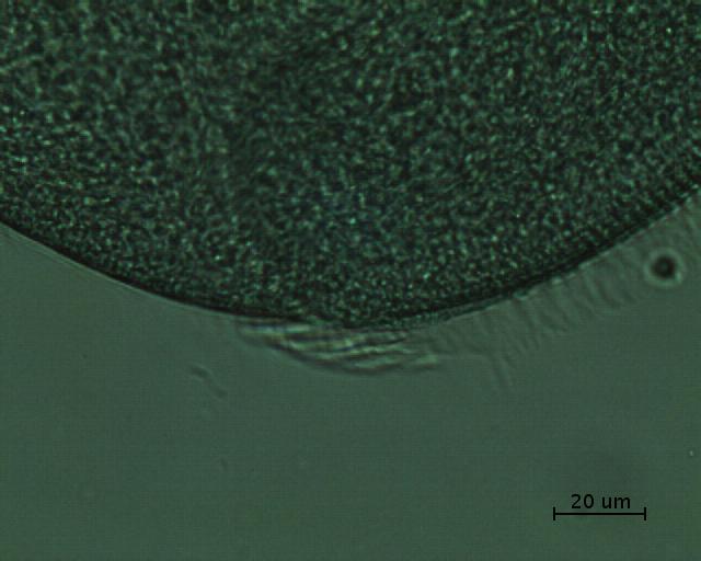 It can be seen that the cilia movement is performed in groups, each moving at a different speed, as it was observed during the snapshots. We also noticed that there was a group of cilia that was always moving faster than the others, as it is indicated in the figure. To estimate the number of cilia that move together, we measured the length of a group (using the image below), which was, on average, around 25um. It was possible to count the cilia, because they were not moving very much: