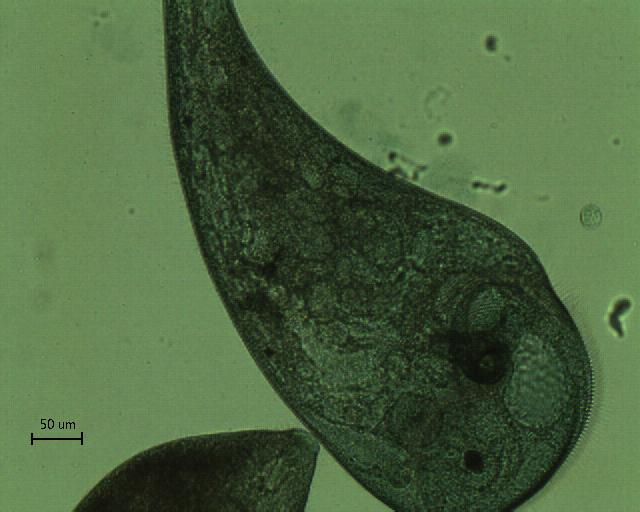 We estimate, using our scale bars, that the length of the Stentor is about 1mm, which makes them one of the largest single-celled organisms.
