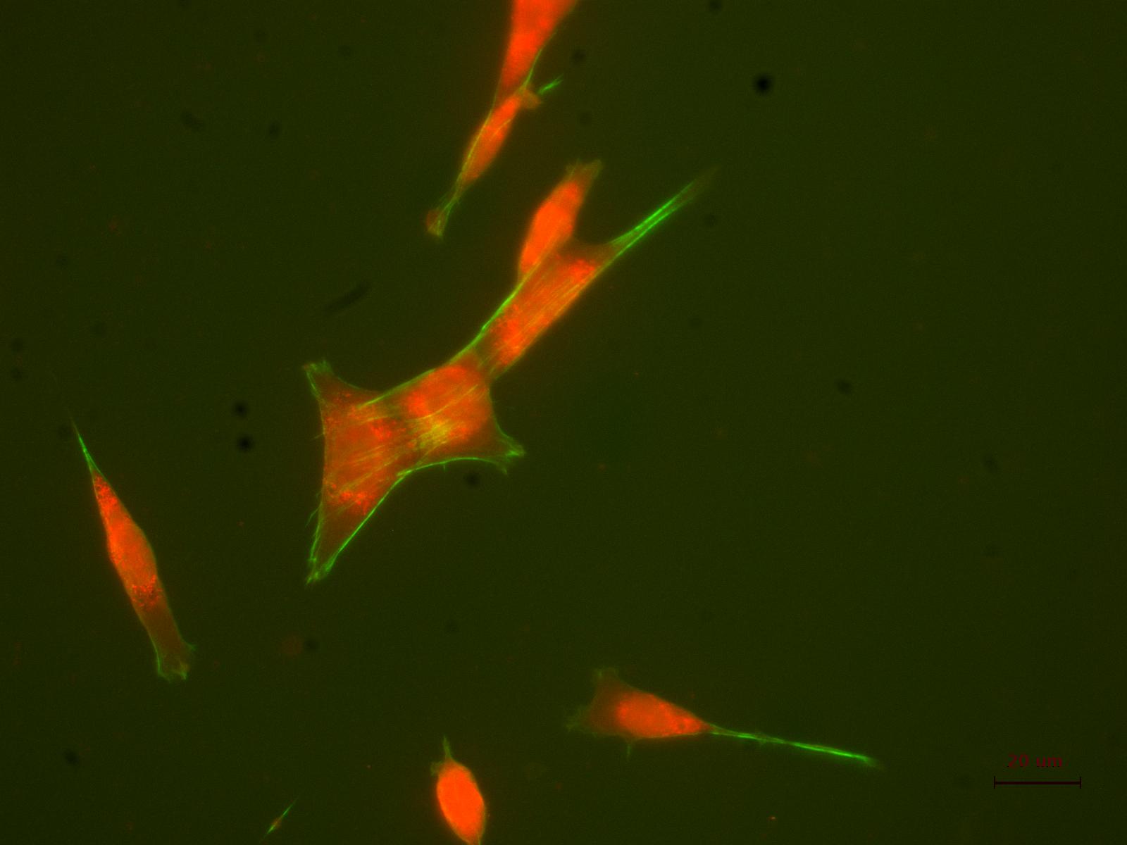 With these pictures, we could estimate the length of the fibroblast cells (using our microscope calibration):