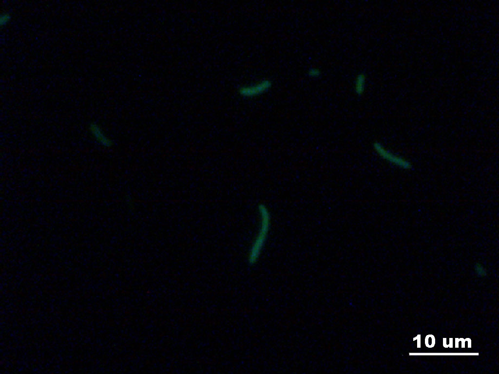 Here is an animated video of stacked images generated by ImageJ. GFP E. Coli movie.